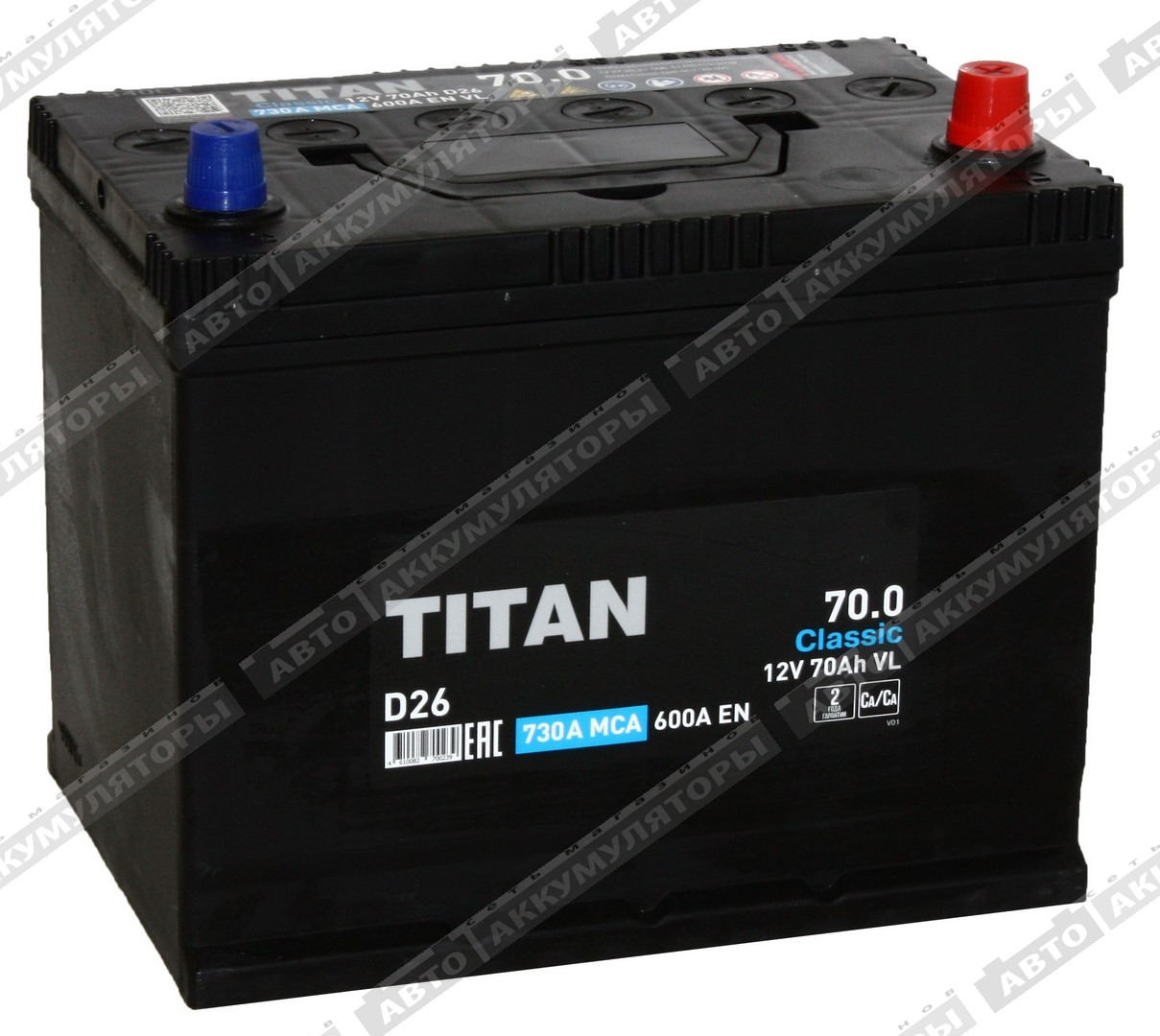 Легковой аккумулятор Titan Classic 6СТ-70.0 VL (D26FL)